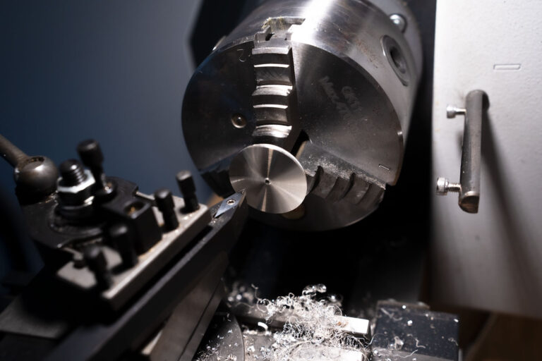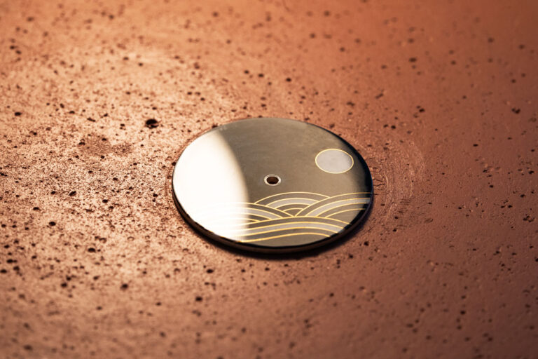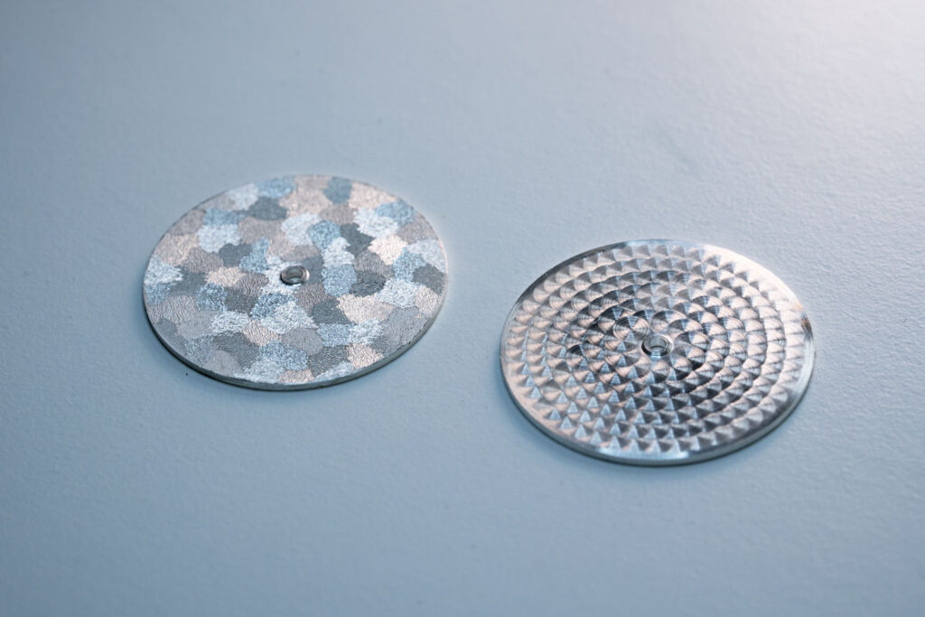 Chaque cadran Ukiyo commence sa vie sous la forme d’une plaque d’argent pur. À l’aide d’un tour à métaux manuel, cette plaque est minutieusement travaillée pour être transformée en un disque parfaitement circulaire. Un perçage précis est ensuite réalisé en son centre, afin de permettre le passage de l’axe des aiguilles.